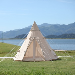 Camping 5-8 Personen Katoenen Canvas Tipi Tipi Glamping Ultralicht Oem Wandelen Piramide Tent Scheur Weerstand Buiten Meubilair
